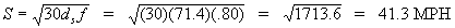 We can see that the two speeds concur with each other so we know our arithmetic is correct. Whenever possible, independent speed estimates should be used. Using Searle�s equation with this same data yields a minimum speed of 52.69 MPH. This is quite a difference. However, when the take off angle is reduced to a more reasonable 10�, the Searle minimum equation yields 52.69 MPH and this equation 51.87 MPH.